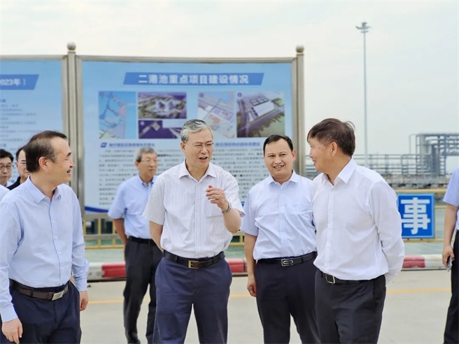 在連云港石化產(chǎn)業(yè)基地規(guī)劃展示館和徐圩港區(qū)二港池,李凡榮詳細(xì)了解基地整體產(chǎn)業(yè)布局、公用工程配套以及徐圩港區(qū)規(guī)劃建設(shè)航道和泊位情況。