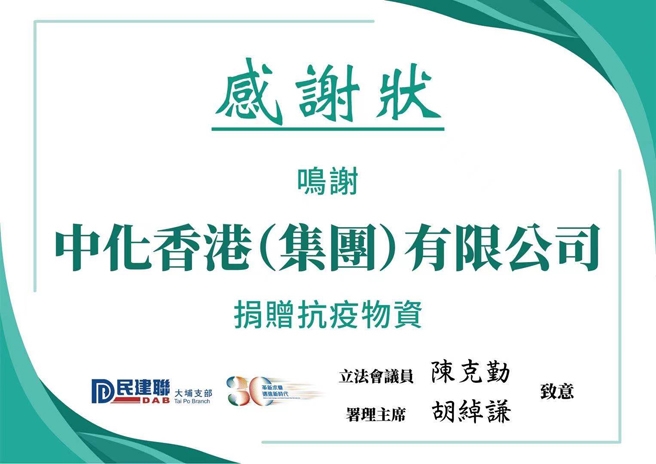 香港發(fā)生第五波新冠肺炎疫情以來(lái),中國(guó)中化公司黨組高度重視,第一時(shí)間傳達(dá)習(xí)近平總書(shū)記關(guān)于支援香港抗擊第五波新冠肺炎疫情工作的重要指示精神,中化香港(集團(tuán))有限公司(以下簡(jiǎn)稱(chēng)“港集團(tuán)”)積極落實(shí)、全力支持香港特區(qū)政府的防疫抗疫工作,通過(guò)捐助醫(yī)療物資、開(kāi)展員工醫(yī)療服務(wù)、積極參加志愿服務(wù)等舉措,與香港各界同心抗疫、共渡難關(guān)。日前,港集團(tuán)收到來(lái)自香港中國(guó)企業(yè)協(xié)會(huì)的感謝信,對(duì)港集團(tuán)積極配合和支持香港特區(qū)政府防疫抗疫工作、為香港穩(wěn)定發(fā)展作出的積極貢獻(xiàn)表示感謝。