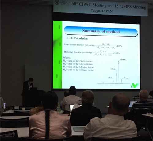 (揚(yáng)農(nóng)股份GLP實(shí)驗(yàn)室負(fù)責(zé)人蔣博士在做CIPAC右旋胺菊酯分析方法匯報(bào))