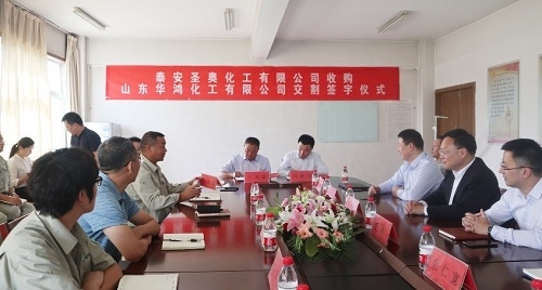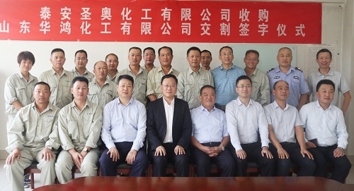 9月6日下午,圣奧化學(xué)科技有限公司(以下簡稱“圣奧化學(xué)”)下屬泰安圣奧化工有限公司(以下簡稱“泰安圣奧”)收購山東華鴻化工有限公司(以下簡稱“山東華鴻”)股權(quán)交割儀式在山東華鴻舉行。泰安圣奧總經(jīng)理閆德剛與山東華鴻董事長于萬震分別在股權(quán)交割備忘錄上簽字。自交割完成日起,圣奧化學(xué)將通過泰安圣奧持有山東華鴻100%股權(quán)。