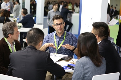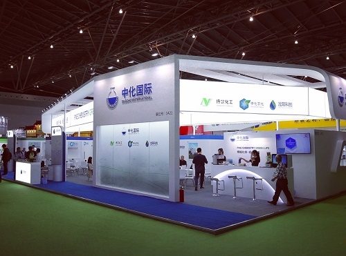 (圖:中化國(guó)際展臺(tái)上中外客戶洽談)