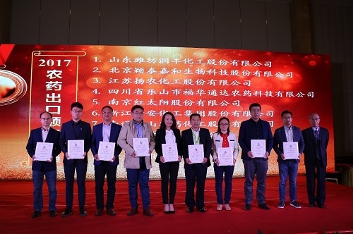(圖:2017年中國(guó)農(nóng)藥出口額30強(qiáng)頒獎(jiǎng)儀式)